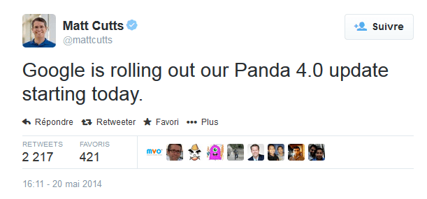 Vous l’attendiez tous… ou pas, la dernière mise à jour de Google Panda est arrivée sur le web. Moins d’un an après (18 Juillet 2013), Google, par l’intermédiaire de Matt Cutts sur son compte Twitter, a annoncé la version 4.0.