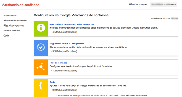 - Accepter le règlement relatif au progeramme Google Marchands de confiance